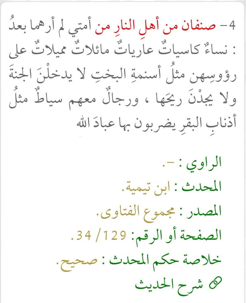 شرح حديث صنفان من أهل النار لم أرهما صفحة الاحاديث النبوية الشريفة Facebook