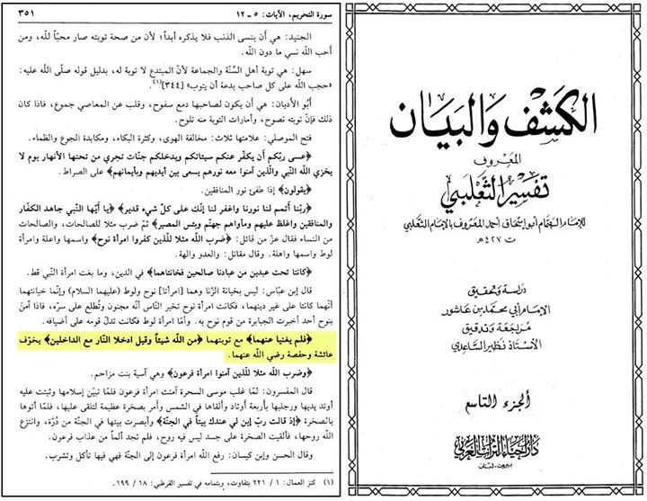 وثائق من كتب المخالفين Ar Twitter ضرب الله مثلا للذين كفروا امرأة نوح وامرأة لوط كانتا تحت عبدين من عبادنا صالحين فخانتاهما فلم يغنيا عنهما من الله شيئا وقيل ادخلا النار مع