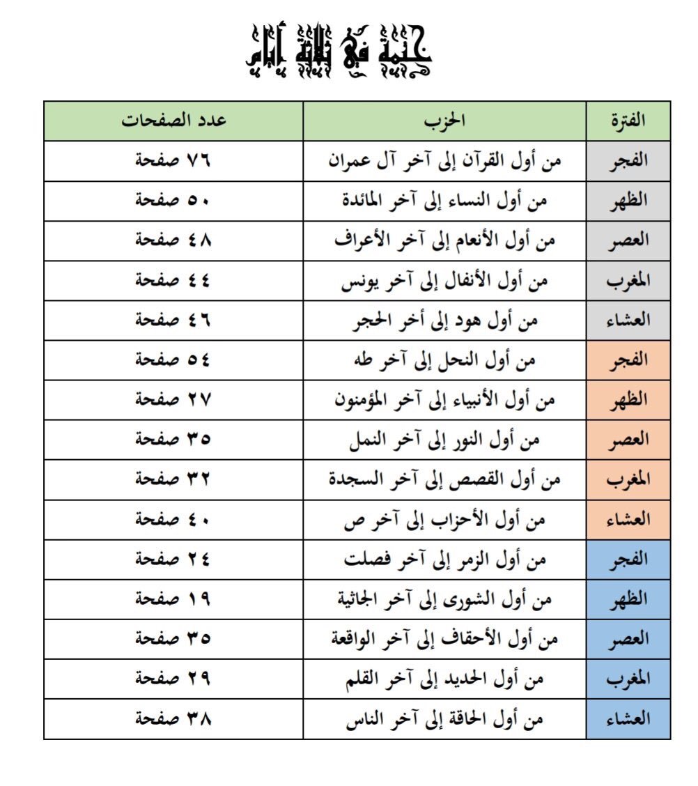 جوهريات على تويتر جدول تفصيلي لختم القرآن الكريم في يوم واحد يومين ثلاثة ايام اربعة ايام لايك قد تحتاجها في رمضان