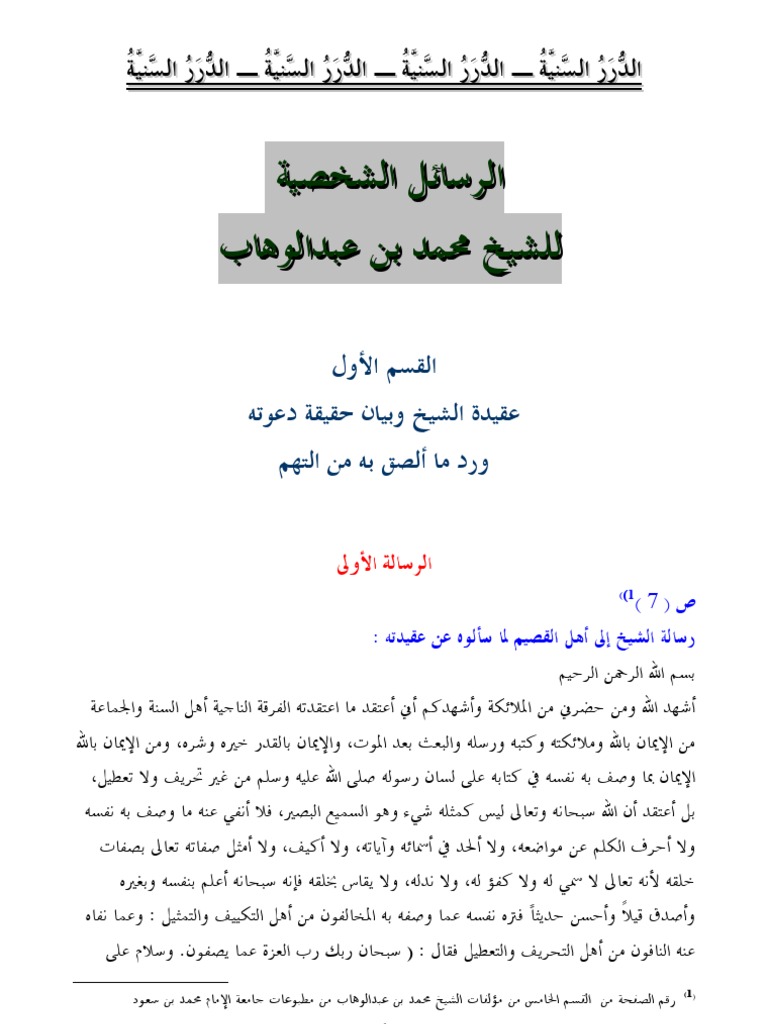 Rasaail Shakhsiyyah Shaykh Muhammad Abdul Wahhaab