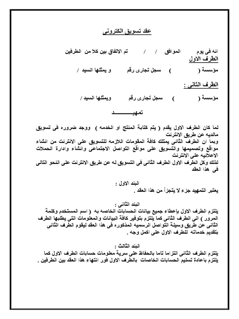 عقد اتفاق بين طرفين Doc نموذج صيغة اتفاقية Pdf للعمل وورد جاهزة