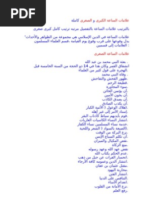 علامات الساعة الصغرى والكبرى بالترتيب والتفصيل Pdf