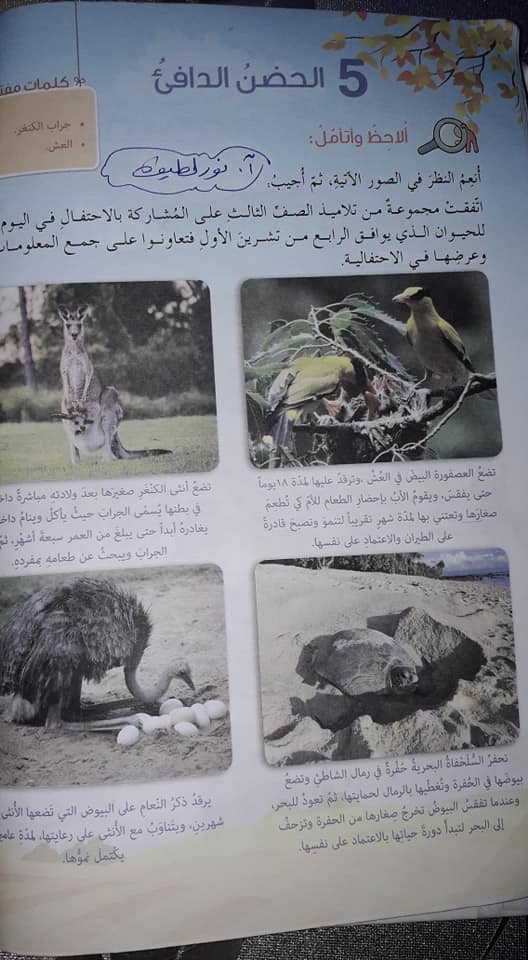 حل درس الحضن الدافئ في العلوم للصف الثالث الفصل الاول