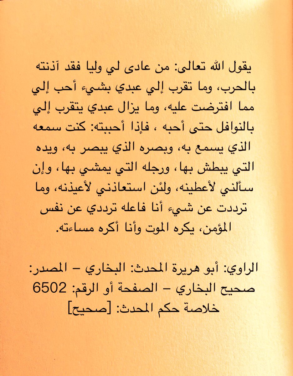 عبدالرحمن السالمي Sur Twitter ويقول الله تعالى في الحديث القدسي من عادى لي ولي ا فقد آذنته بالحرب وما تقرب إلي عبدي بشيء أحب إلي مما إفترضته عليه وما يزال