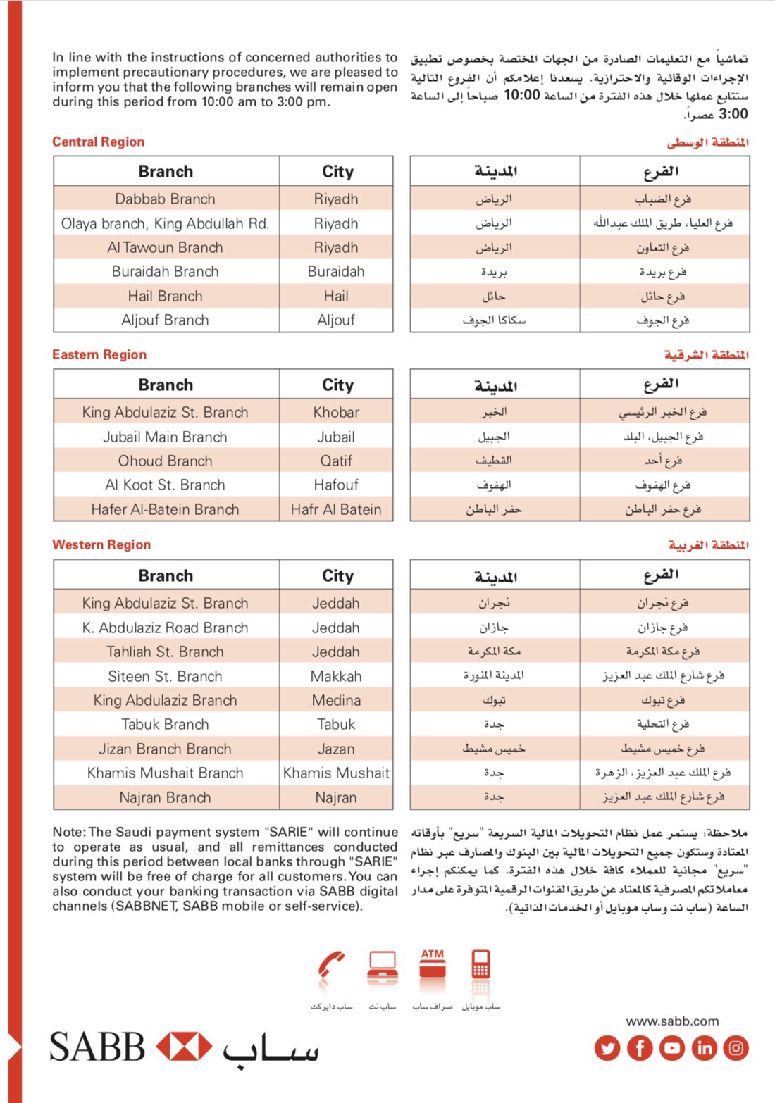 بنك ساب On Twitter عملاء ساب الكرام لخدمتكم بشكل أفضل تم تحديث قائمة الفروع التي تتابع عملها خلال فترة الإجراءات الاحترازية والوقائية لتشمل تغطية أوسع علما ان تم إضافة فرع حي التعاون