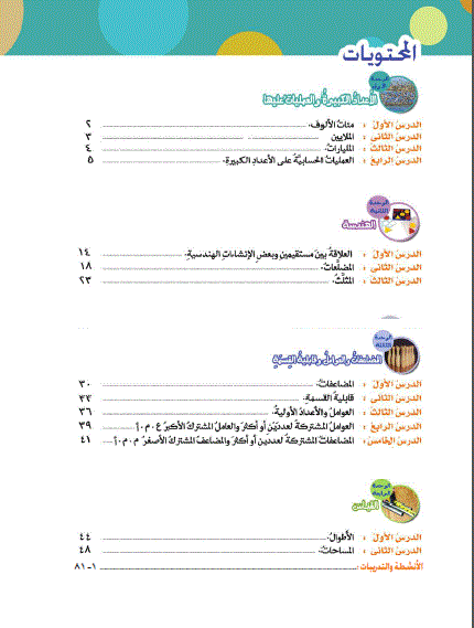 بالصور فهرس كتاب مادة الرياضيات الصف الخامس الفصل الاول منتديات صقر الجنوب