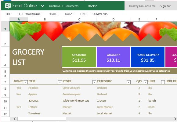 قائمة البقالة ومقارنة سعر قالب لبرنامج Excel اون لاين