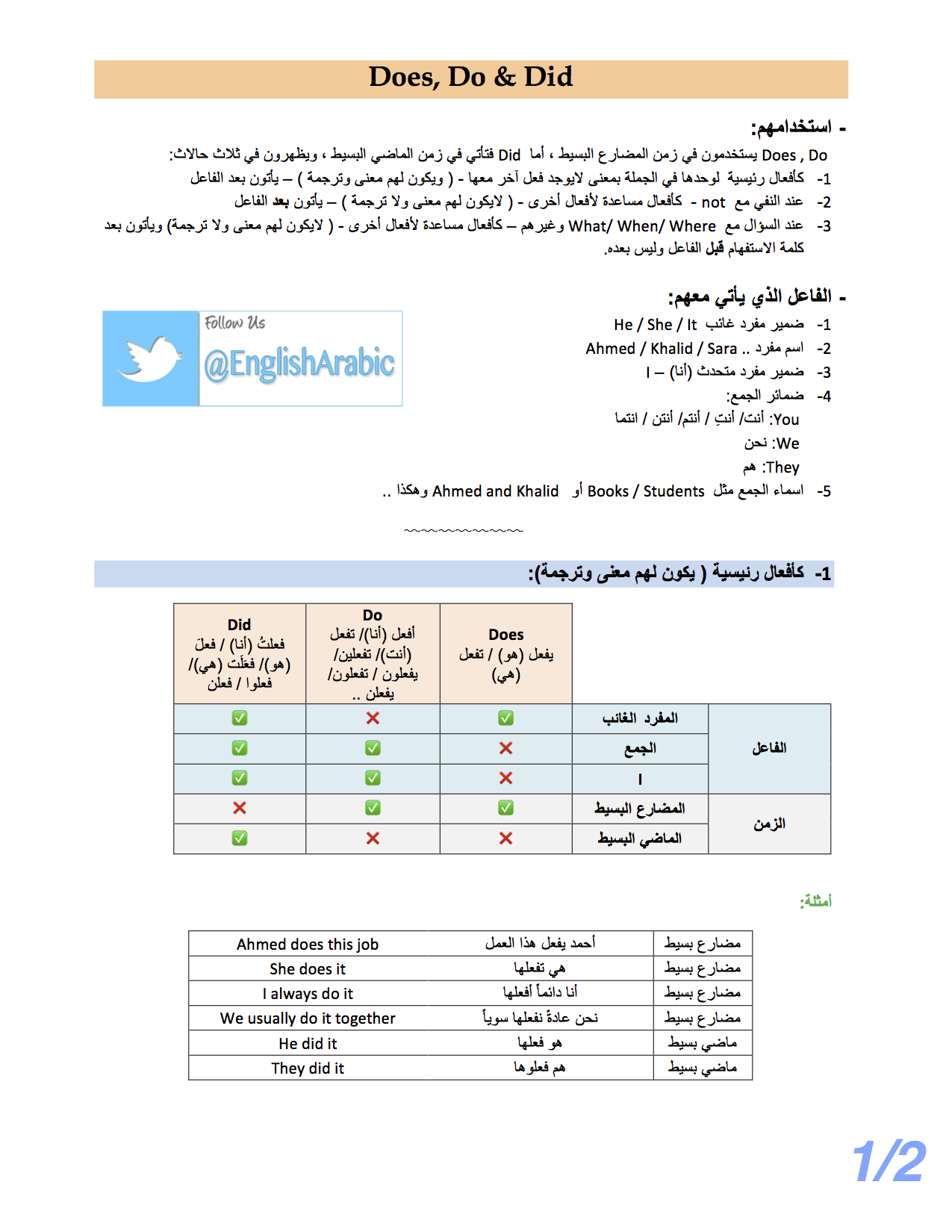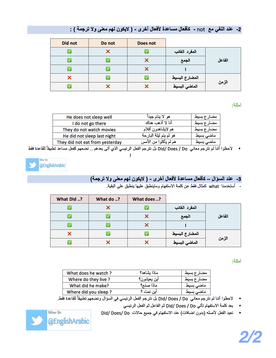 تعل م الإنجليزية معنا على تويتر Does Do Did شرح مفصل للفرق بينهم واستخدامهم في زمني المضارع البسيط والماضي البسيط لاتنسونا من دعائكم Https T Co Vgdtrvazjk