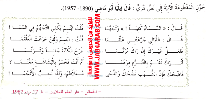 شرح قصيدة ابتسم لإيليا أبو ماضي سطور