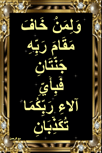 ولمن خاف مقام ربه جنتان و ل م ن خ اف م ق ام ر ب ه ج ن ت ان