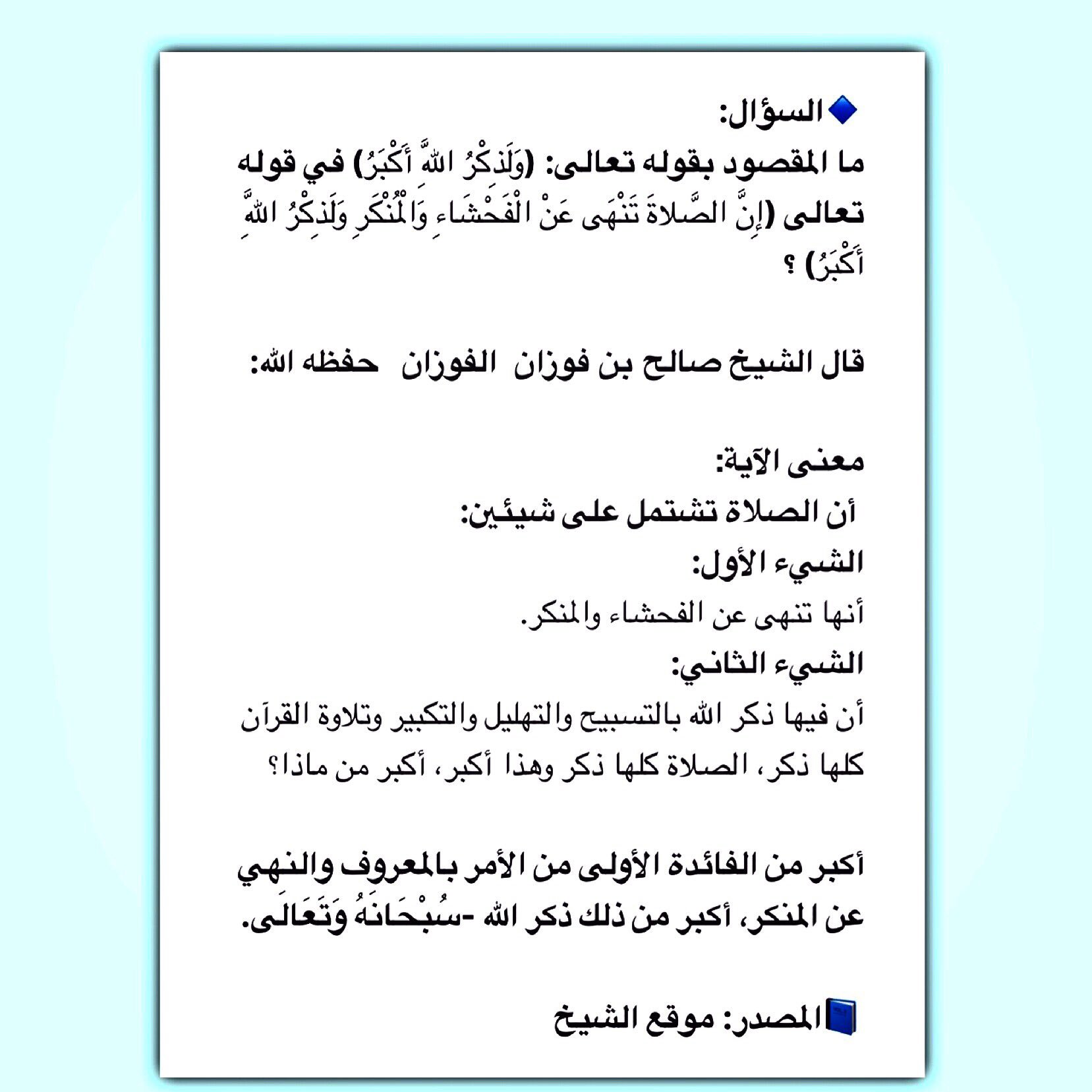 العلامة صالح الفوزان Sur Twitter السؤال ما المقصود بقوله تعالى و ل ذ ك ر الل ه أ ك ب ر في قوله تعالى إ ن الص لاة ت ن ه ى ع ن ال ف ح ش اء و ال م ن ك ر و ل ذ ك ر الل ه أ ك ب ر قال الشيخ صالح بن فوزان