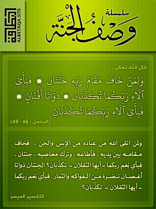 ولمن خاف مقام ربه جنتان مدونة نور الكتاب والسنة