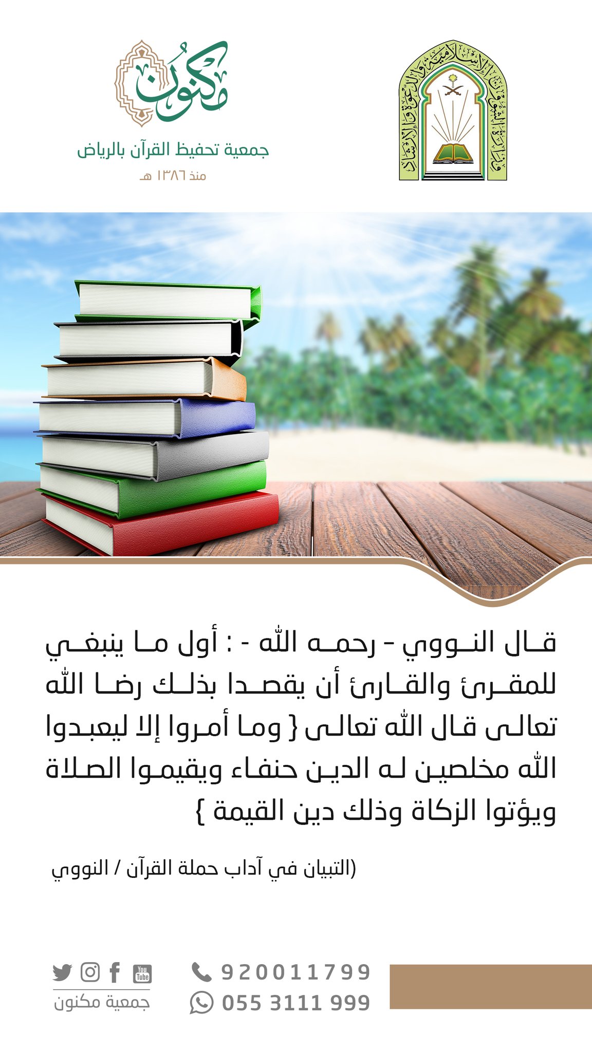 جمعية مكنون لتحفيظ القرآن بالرياض در توییتر و م ا أ م ر وا إ ل ا ل ي ع ب د وا الل ه م خ ل ص ين ل ه الد ين ح ن ف اء و ي ق يم وا الص ل اة و ي ؤ ت وا الز ك اة و ذ ل ك د ين ال ق ي م ة Https T Co Zwavuf4p3l