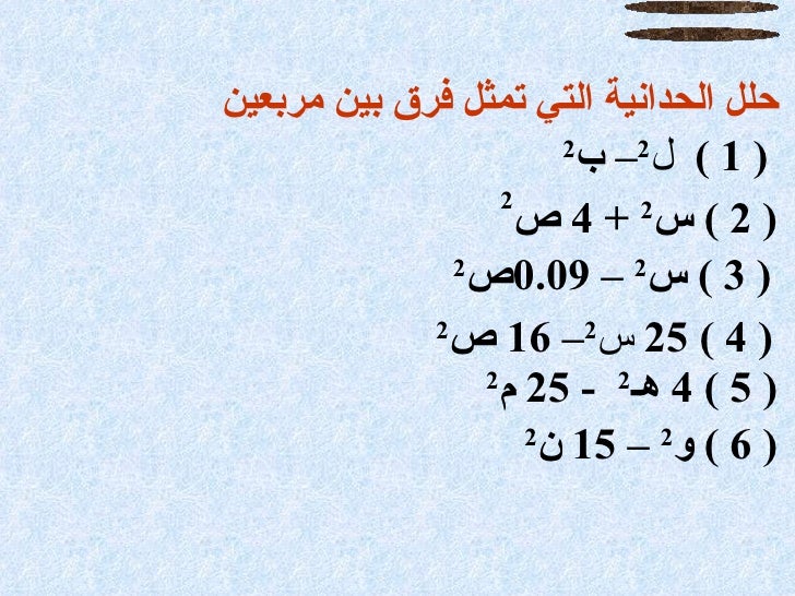منتديات يزيد التعليمية الفرق بين مربعين مربع الفرق بين حدين