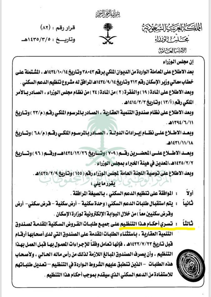 قرار مجلس الوزراء رقم 82 بتاريخ 5 3 1435