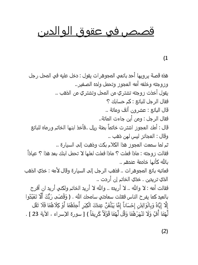 قصص قصيرة رائعة عن بر الوالدين وثوابه في الدنيا والآخرة